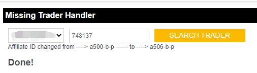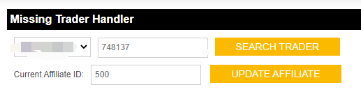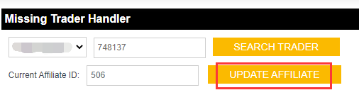 Step 3. Click on Search Trader, it shows current affiliate ID of this user.