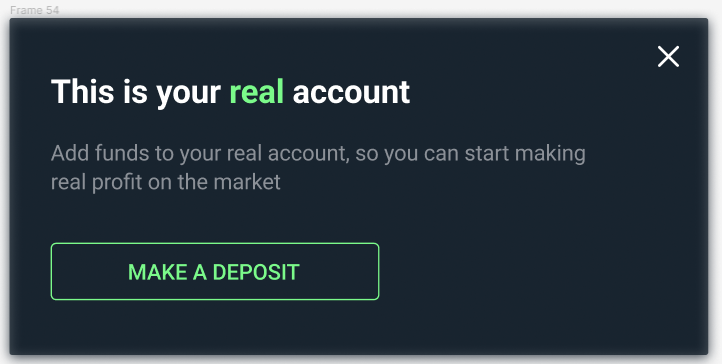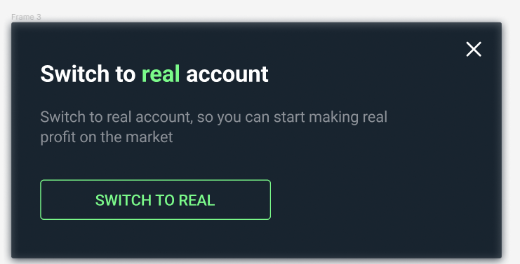 once user’s balance in practice wallet is equal or below the default amount for the high low trade then the popup will be shown
