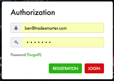 - redirect to dedicated login page with Tradesmarter's login widget or a customized login form.