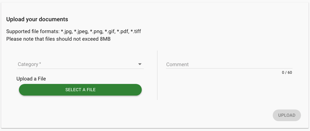 The "Upload Documents" process will allow a user to upload his documents to the server, for his KYC/Account Validation process.
