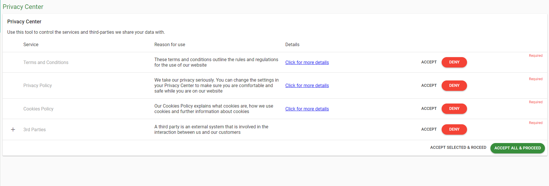 Clicking the “Update Privacy” button will lead the user to the new “Privacy Center” widget.
