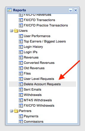 This report show all the users that requested to be deleted. It can be sorted by name, ID, dates. The agent can schedule follow up date or assign the user to another agent for further discussion. The report can be filtered by “Requested” and “Deleted” status.