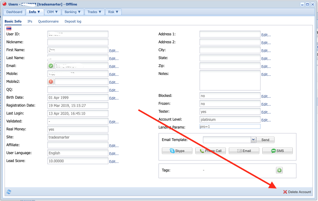 Tradesmarter, being your data processor, made it technologically possible for you to comply with the EU GDPR regulations and offer your users the security and safety policies required. We do NOT delete user’s accounts by default, the request is NOT granted automatically by the system and it can be processed only by your actions (Manual or via API).The deletion process is final and irreversible - Once the user’s account was deleted, the user’s PII can’t be restored under any circumstences!