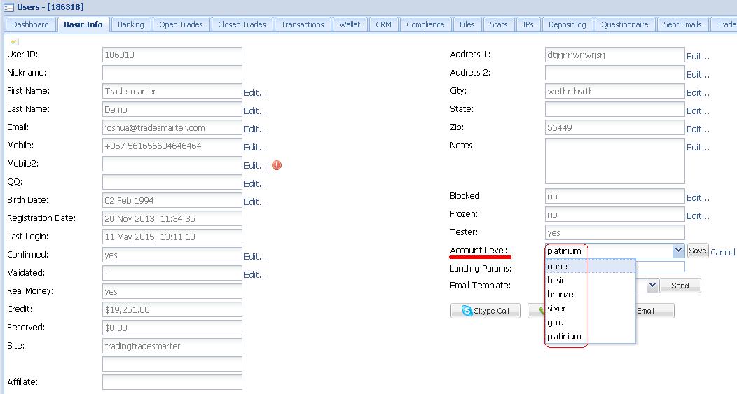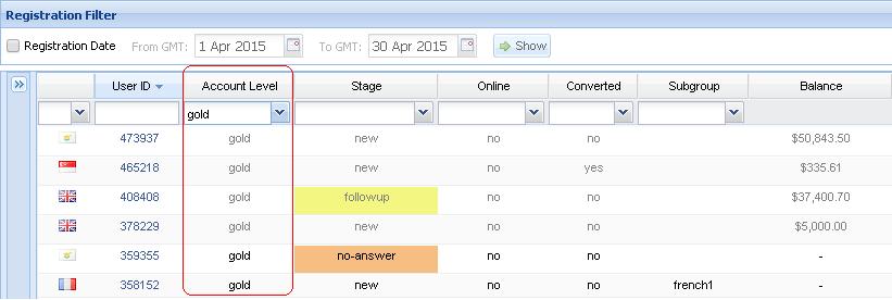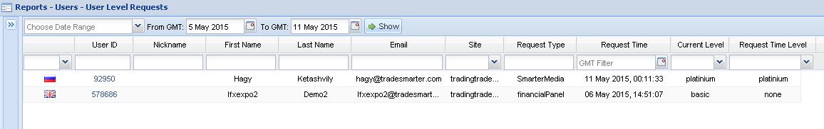 The account level request report shows you all account level requests that have been requested by Users through their platform. This report gives the sales team the opportunity to contact level request users and advance them to their next account level through the appropriate deposit. The account level request report is accessed through "Users"