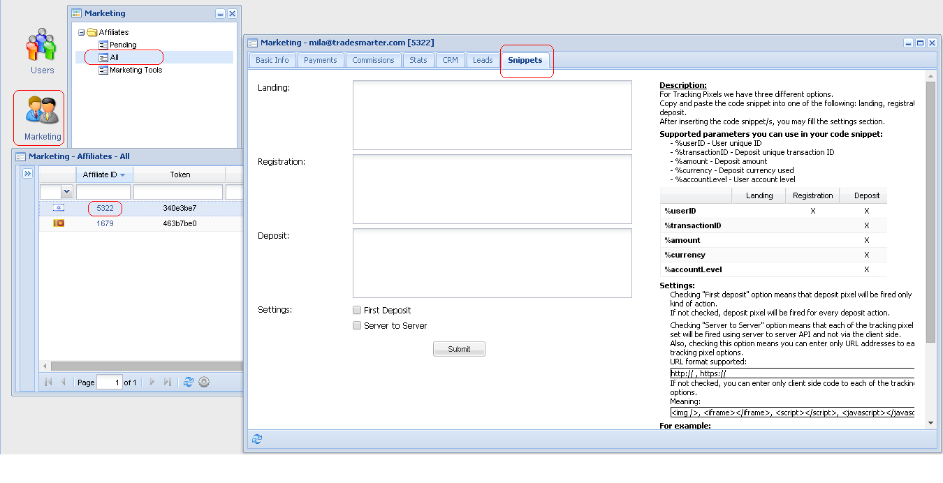 1. Click on the marketing tab => All => and choose the relevant affiliate