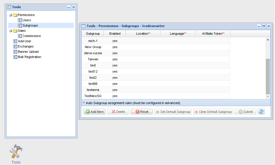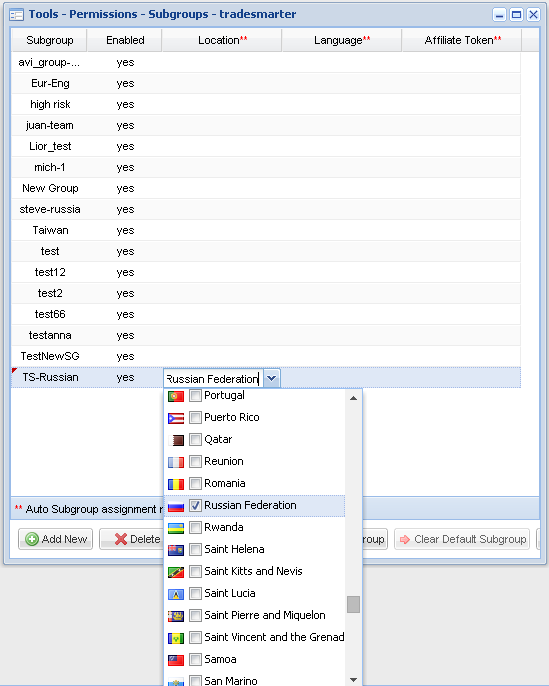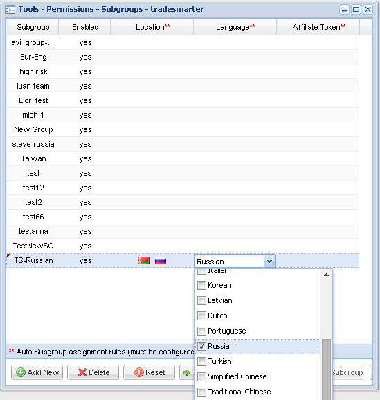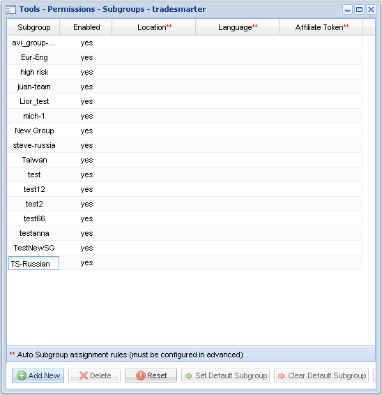 The Tradesmarter CRM will execute lead allocation to specific subgroups upon registration using pre set criterion. The rules are set within the subgroup creation tool. Currently three auto subgroup assignment rules can be set which are, location, language and affiliate token. Each rule can be set with multi criterion. A default subgroup can be created for auto allocation of leads which have not met the pre set rules.