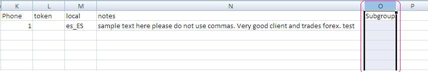 The column "O" on the bulk registrations .csv file is used to assign leads to sub groups. It is very important to note that the sub group needs to be added to the .csv file exactly as it appears in the CRM including case sensitivity.Â