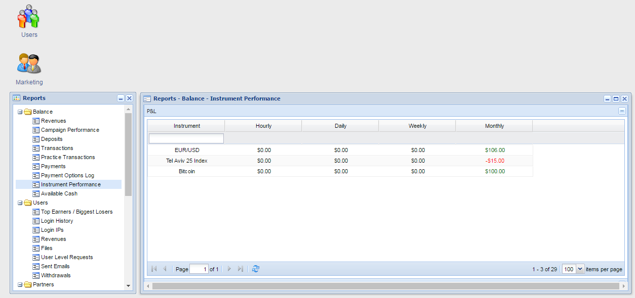 Please note that this report show the P&L status per instrument.