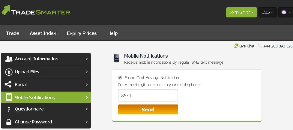 Once the user clicks Verify, the system will send a code to his mobile through SMS.